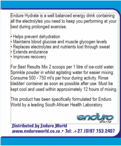 Endure Hydrate is a well balanced energy drink containing all the electrolytes you need to keep you performing at your best during prolonged exercise.