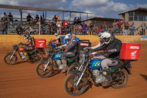 They took to the track on the kind of bikes that you’d more usually see at your front door bringing you your groceries or a takeaway, with Honda Ace 125 motorcycles sponsored by Honda SA for all the riders except Ross Branch, who took his Hero Eco 150 for a ‘slide’.