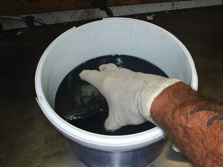 Use petrol, paraffin or one of the proprietary solvents. I use a mixture of diesel and petrol which I buy cheaply from my local garage. They drain it from customers cars after the attendant has put the wrong fuel into the tank. Stuff to remember: Always use gloves when you are handling petrol. Gloves are cheap enough from Dischem, cancer is worrying and expensive. Also, when you need to dispose of the used solvents, phone The Rose Foundation or a similar organization and let them take it away. Please don’t pour it down the drain.