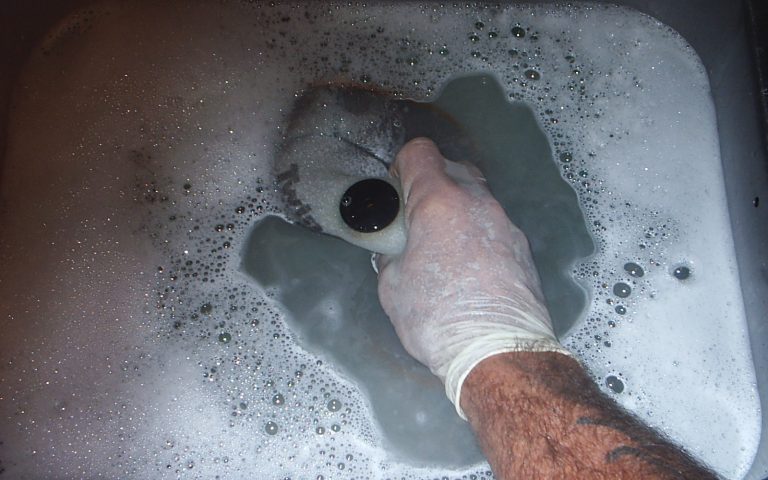 Step two: Washing the foam in hot soapy water