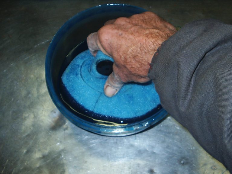 Step three: Soaking the foam in filter oil
